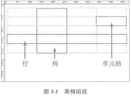 表格的行和列需要根据页面的section内容来确定。尽管在HTML 代码中通常不会明确指定列,但Dreamweaver 允许对列、行和单元格进行操作,如图3-1 所示。