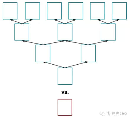 没错,就是偏向酷酷的感觉,把很多个页面,都归纳为一个页面,我们都知道SEO的世界里,更多的页面,意味着更多的关键词和排名,以及更多的流量,这基本上是正相关关系。用图来说话,更形象一些: