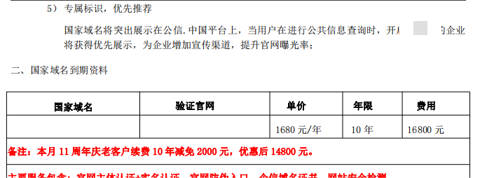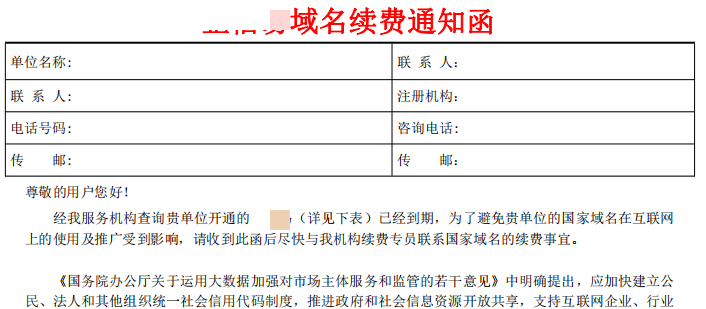 域名诈骗现象屡见不鲜。由于很多刚开始管理域名的站长对此并不熟悉,骗子将合同和赠送信息进行了巧妙的包装。不熟悉域名规则或者刚刚创业的朋友可能会被对方焦急的语气吓到,配合对方付款。对于普通域名来说,正常的一年续费只需几十元。续订期限可选择一年或多年。没有强制要求每次续保10年,仍然是近2万元的高额费用。
