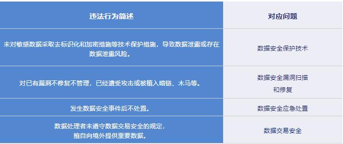 其中,数据保护义务问题多达28个,数据安全应急响应和数据风险评估与监控问题3个,数据交易安全问题2个。