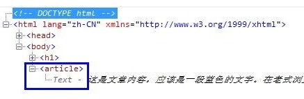 我曾经做过一个测试(以IE8为例),是一篇文章标题和文章内容用蓝色文字,文章内容使用了article标签。代码如下: