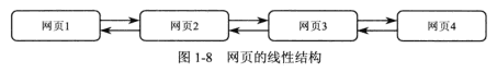 线性结构的网页组织形式如图1-8所示。一般用于信息量较少的小型网站,索引站点,或组织网站的部分内容。